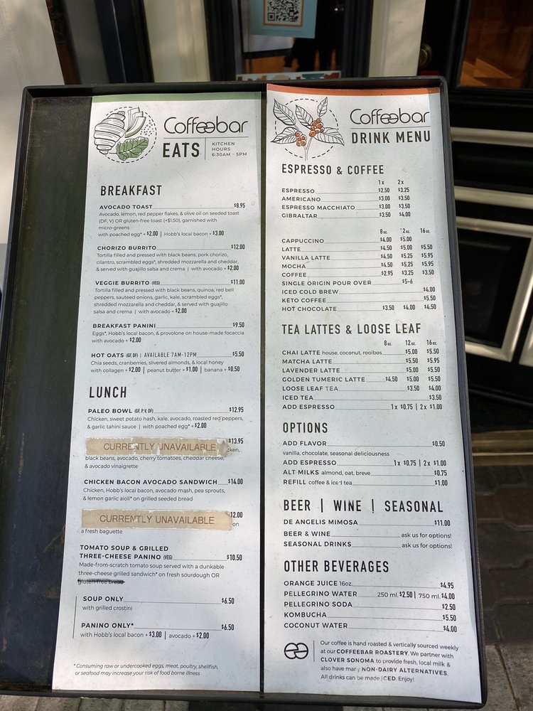 Welcome to Coffeebar Redwood City, a vibrant haven for breakfast and brunch lovers located at 2020 Broadway. This charming wine bar captivates with a menu that fuses fresh ingredients and local flair. Dive into the Chorizo Burrito, a delightful blend of black beans and pork chorizo, perfectly complemented by guajillo salsa. For a comforting option, the Tomato Soup and Grilled 3 Cheese Panino is both indulgent and homely. Don't miss their artisanal pastries, particularly the Butter Croissant and Ginger Molasses Cookie, which exemplify the café’s dedication to quality. Customers rave about the rich lattes, especially the aromatic Honey Almond Latte, making it the ideal spot for coffee enthusiasts. With an inviting atmosphere and friendly service, Coffeebar promises a memorable start to your day.